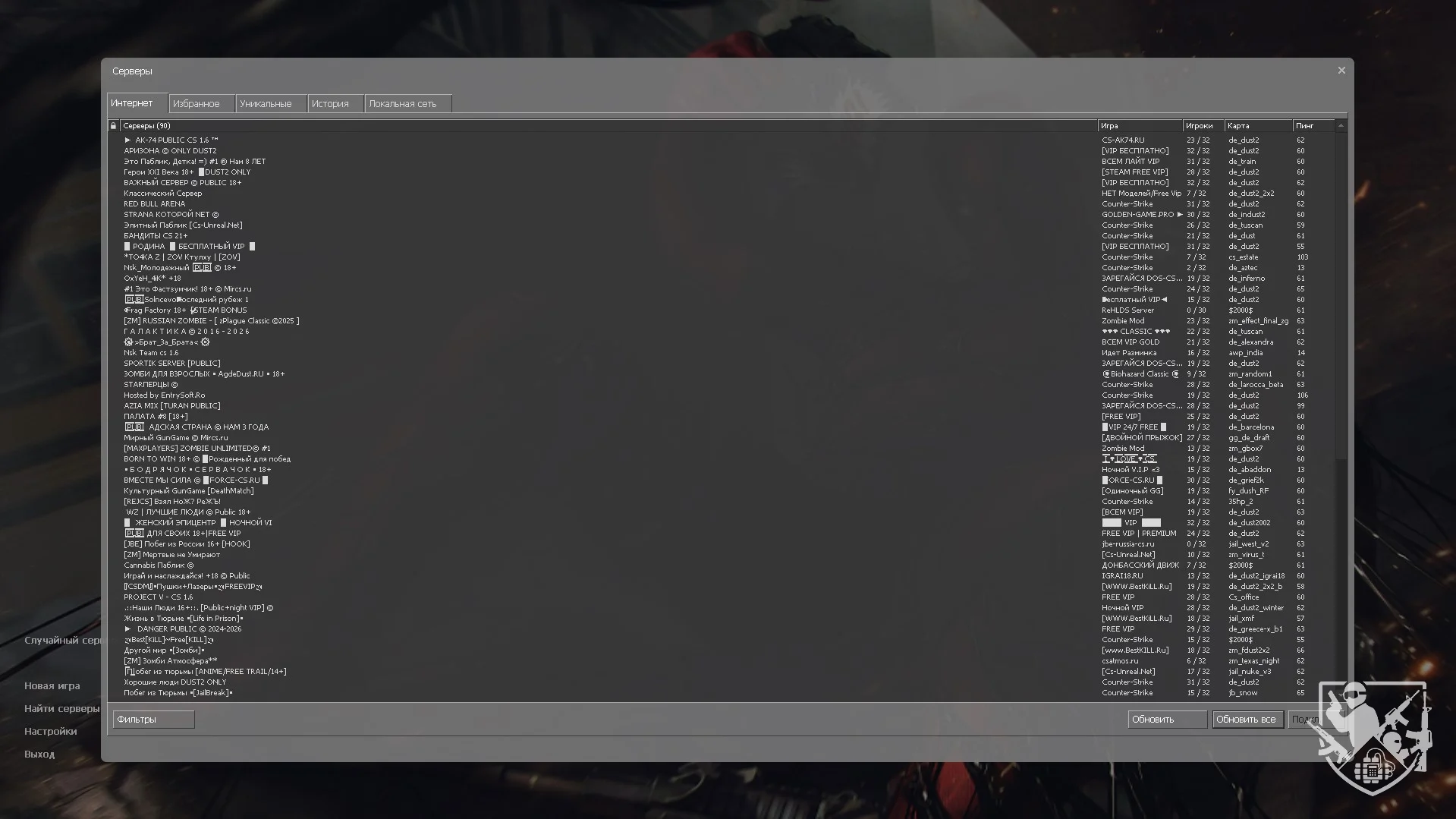 Полный список по категории «Сборки CS 1.6» 61 шт.