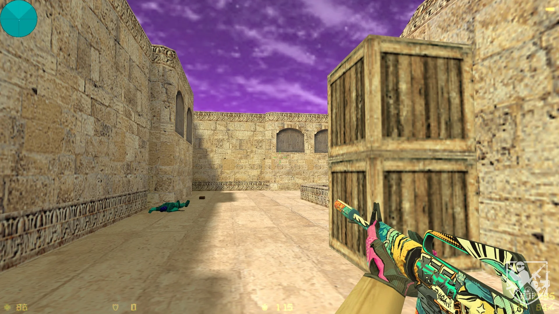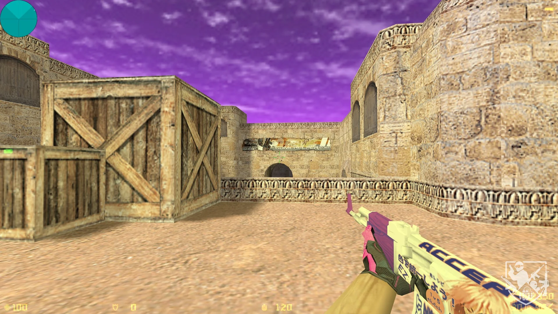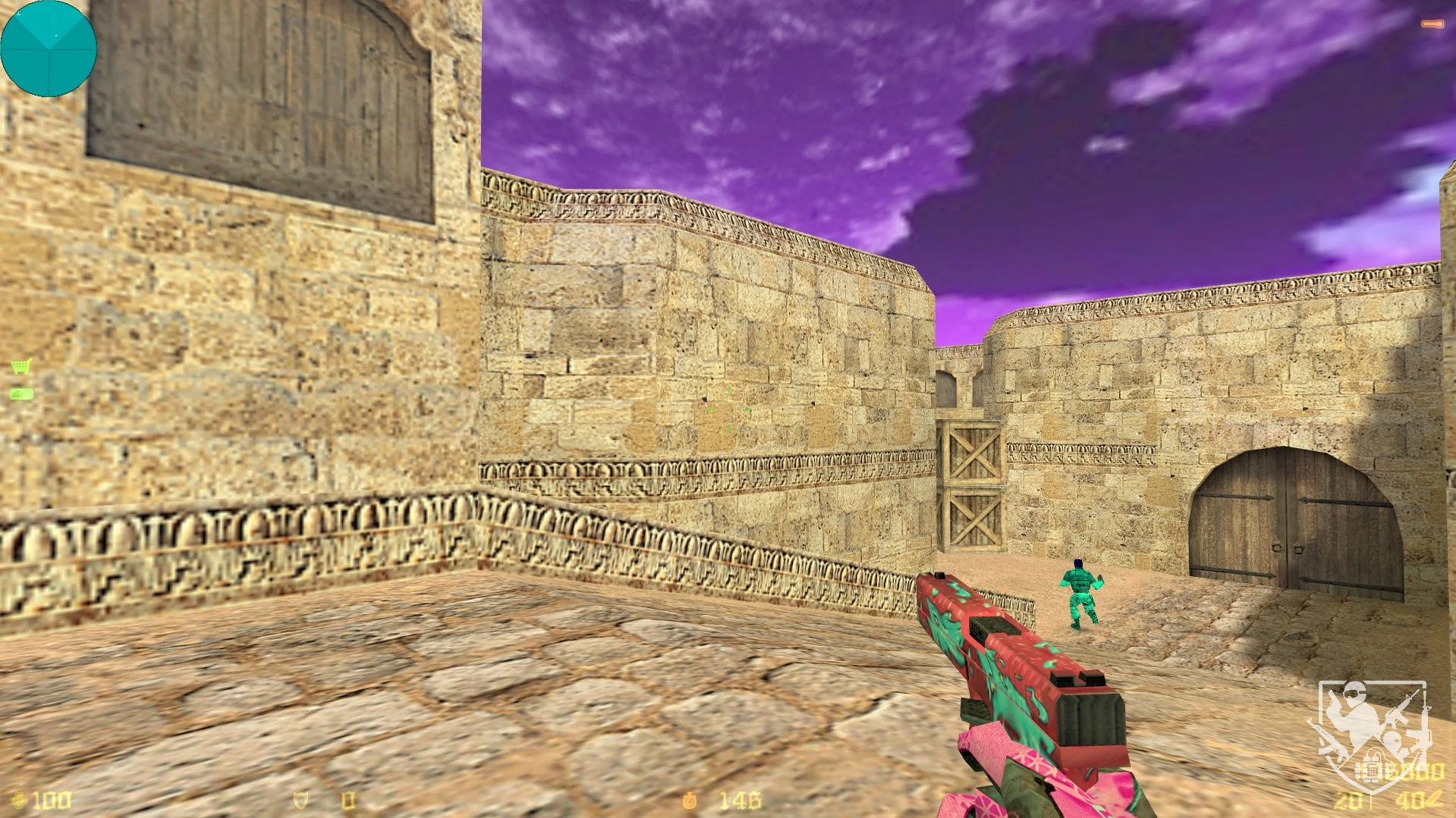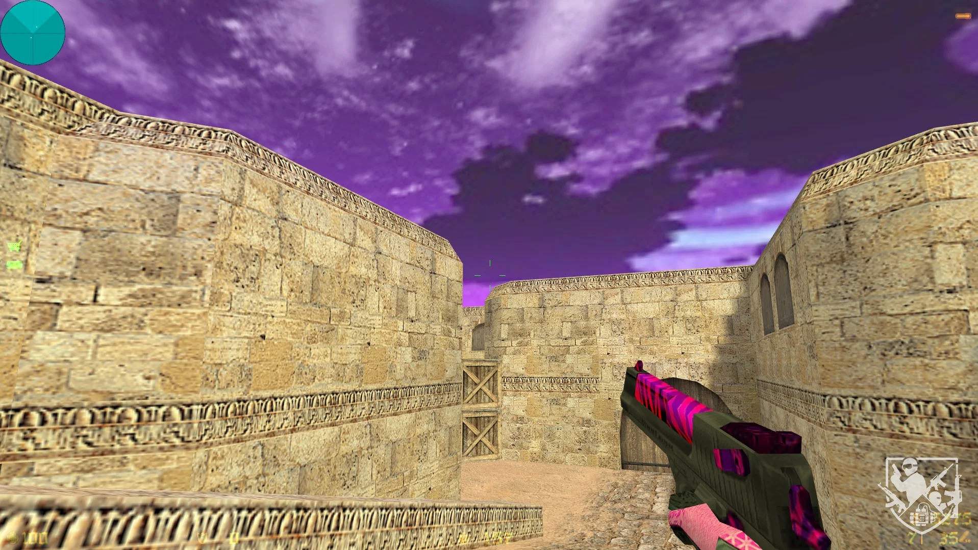 Авторам удалось реализовать редкий для Counter-Strike 1.6 визуальный стиль, где агрессивные, «кислотные» оттенки розового и мятного в скинах оружия и перчатках парадоксальным образом повышают заметность объектов в игровом пространстве. Это создает неочевидное преимущество: противники, использующие стандартные, более тусклые текстуры моделей, визуально теряются на фоне яркого арсенала игрока в «pigeon», что делает процесс прицеливания и фокусировки в динамике боя более интуитивным и быстрым.